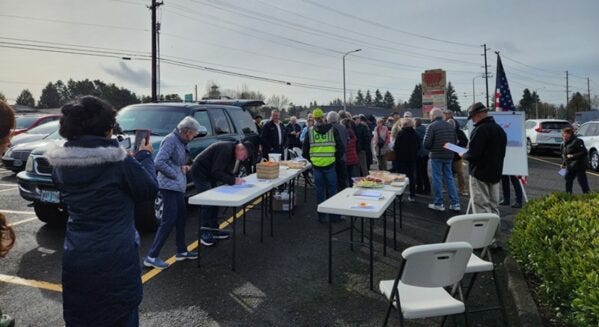 After an internet mob of losers on Reddit discovered that elderly Americans would likely be listening to speeches which had not been pre-approved by Democrats, the clubhouse where the event was scheduled to take place received thirteen threatening phone calls within 24 hours. As a result, the facility backed out. That, however, did not cancel the event. The brave promoters moved it to an empty Shari’s Restaurant (now closed due to Bidenomics) parking lot two blocks away. About 70 AMAC members and friends showed up to listen to the speakers and enjoy potluck. They were joined by several pedestrians who happened by. The event did, however, have to be shortened from five to three speakers because there were no chairs available. Senior citizens are not afraid of domestic terrorists, but many can’t stand in one place for three hours regardless how engaging the speakers! ...READ MORE...