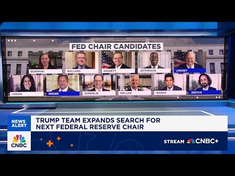 CNBC’s Steve Liesman joins ‘Squawk Box’ with the latest news, including Trump consideration of 11 candidates for Fed chair, including David Zervos and Rick Rieder: Sources ...WATCH HERE...