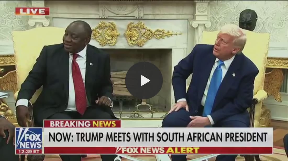 President Trump had South African President Cyril Ramaphosa in for a little chat on Wednesday. Once everyone was seated in the room, Trump dimmed the lights and played videos of the genocide of whites by black goons backed by a government that sings Kill the Boer while confiscating the land of white farmers.