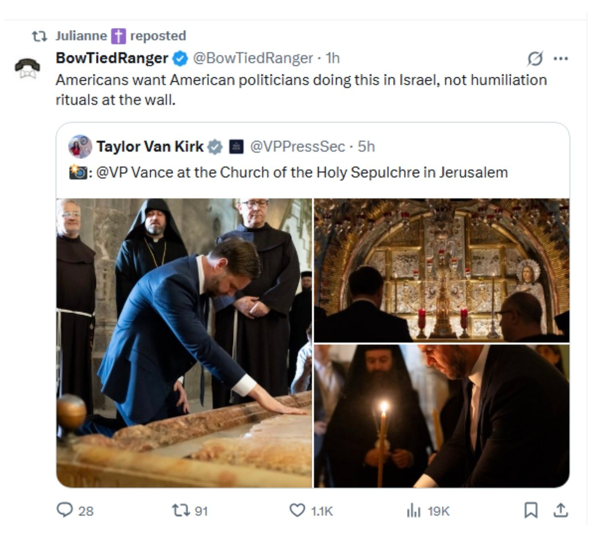 You know, this really pisses me off. No, not Vice President J D Vance visiting the Church of the Holy Sepulchre in Jerusalem, a place where I have been and found amazing and inspiring, but the utterly asinine comments of (supposedly) good Americans, some of whom even profess to be Christians. ...READ MORE...