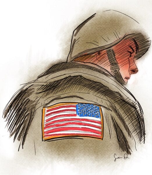 I was late for a plane when I saw him. The freckled kid was in uniform. Operational camouflage combat fatigues. Reverse-flag patch on the right shoulder. High and tight haircut. …READ MORE…